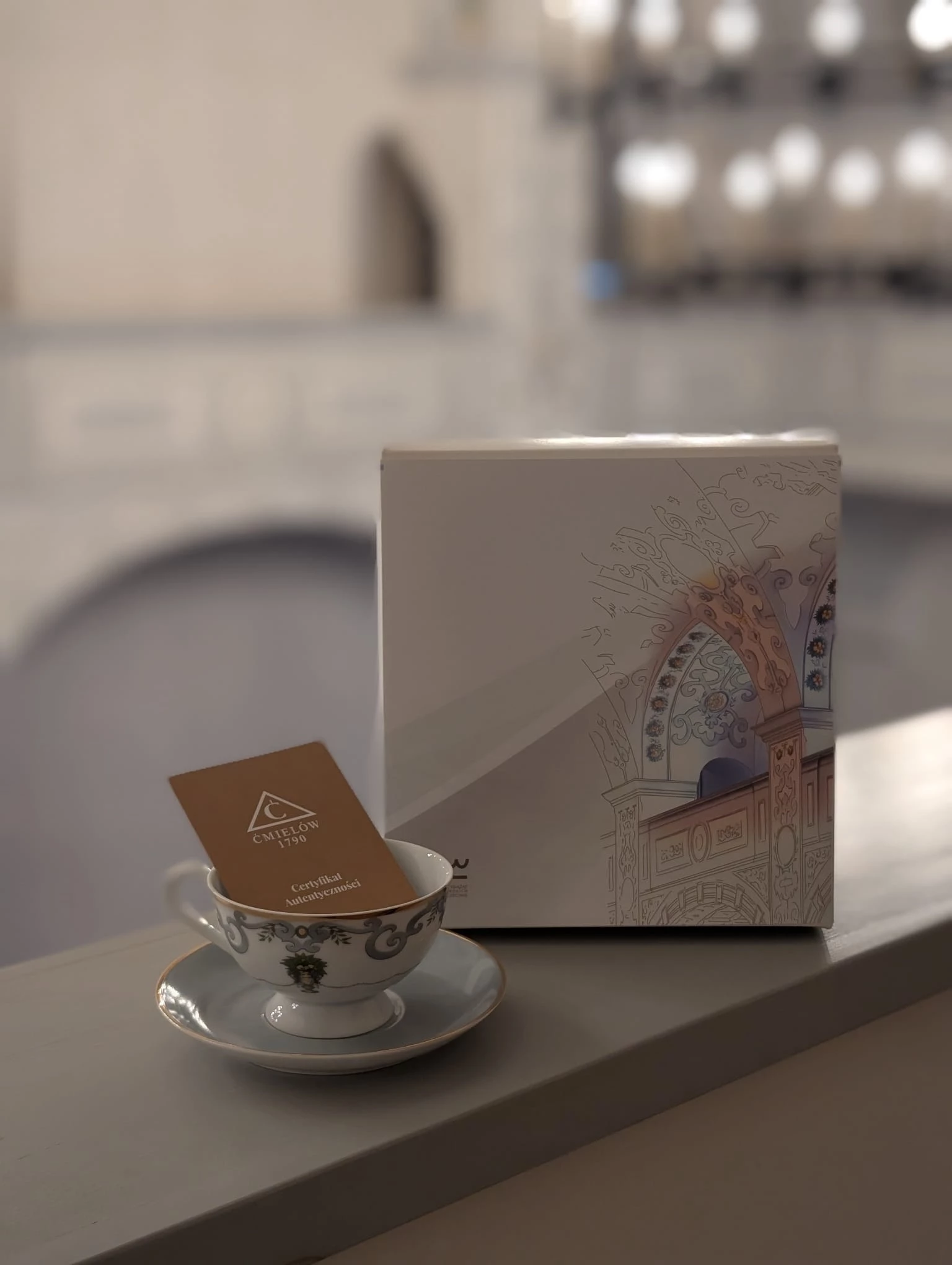 Filiżanka okolicznościowa inspirowana Salą Bogusława X powstała we współpracy z marką Ćmielów. Polską marka z ponad 200-letnią tradycją, której początki sięgają 1790 roku.Stworzona została na otwarcie Zamku po odbudowie Skrzydła Północnego. To największa i najbardziej reprezentacyjna sala Zamku Książąt Pomorskich w Szczecinie, która pełniła niegdyś funkcję kościoła zamkowego. Powstała w XVI w. podczas przebudowy zamku na zlecenie księcia Jana Fryderyka przez włoskich mistrzów pod kierunkiem Wilhelma Zachariasza. W jej wnętrzu do dziś można podziwiać relikty średniowiecznego kościoła oraz fragmenty dawnych murów obronnych. Sklepienia zdobi neorenesansowa malatura, odtworzona na podstawie szkiców Paula Kutschmanna z 1909 roku.